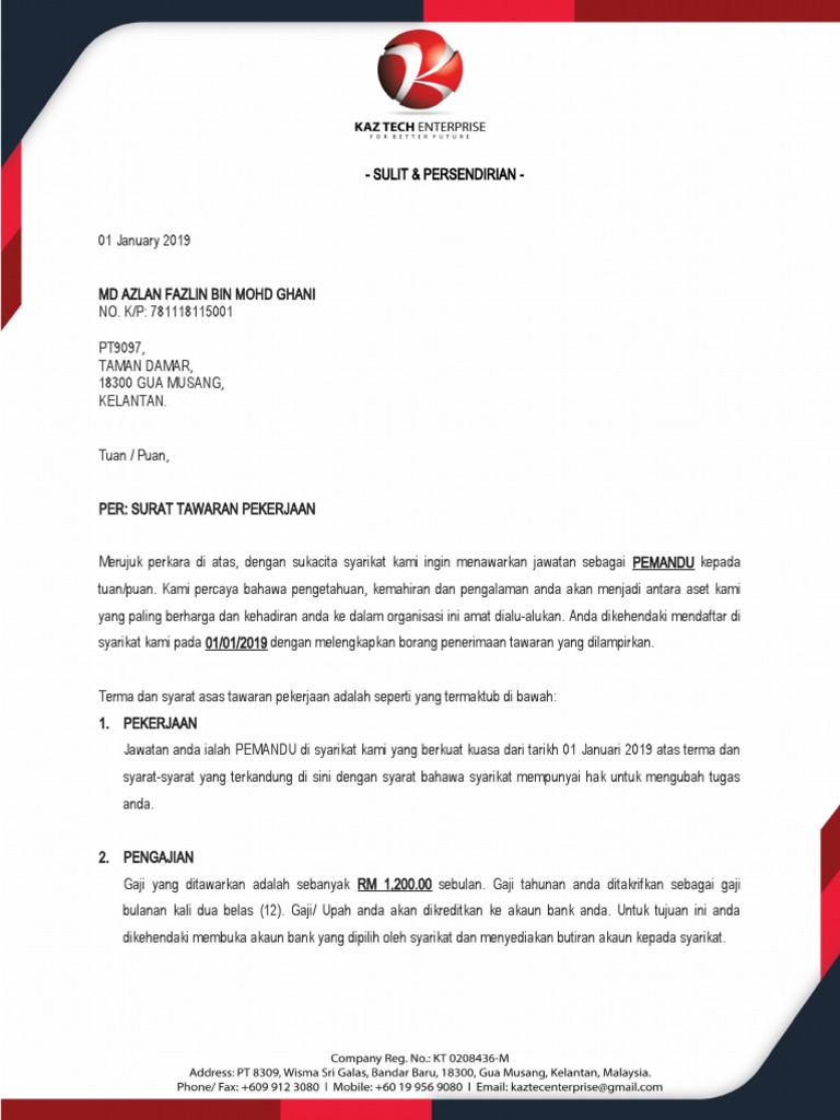 Surat Tawaran Kerja 2019 Letter 7saudara Com